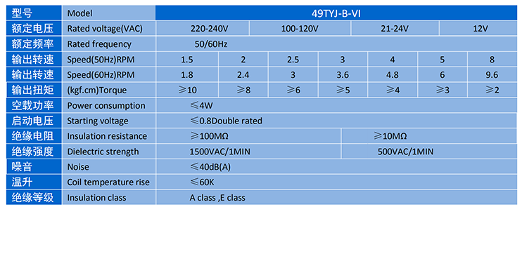 電機主要性能表 SPECIFICATION